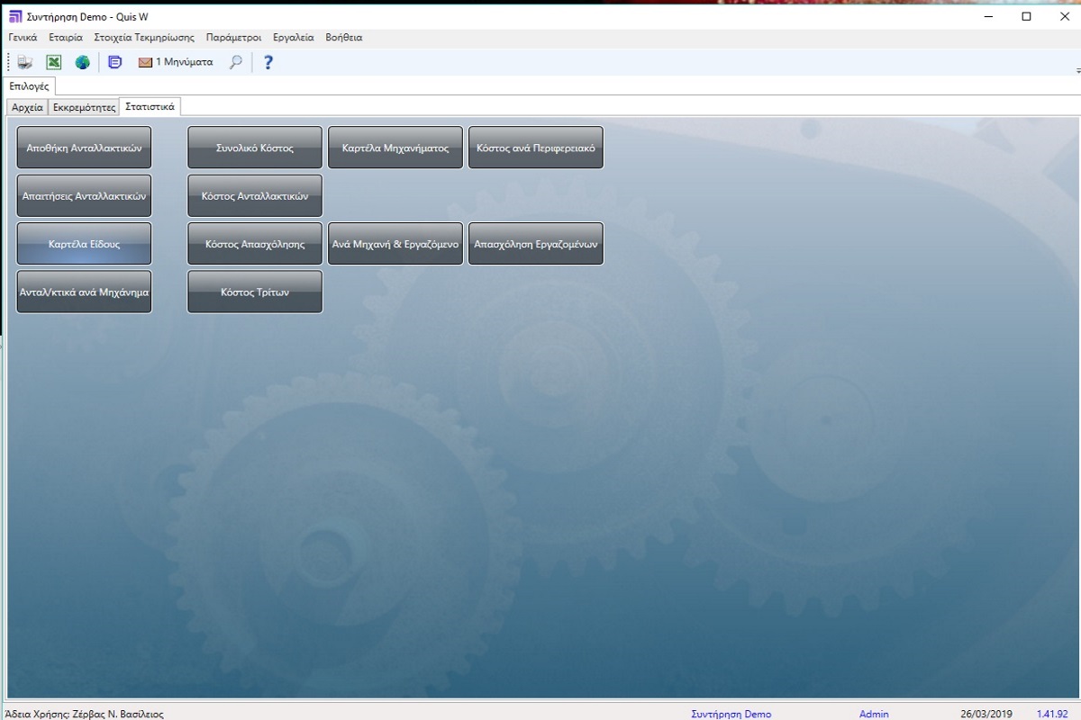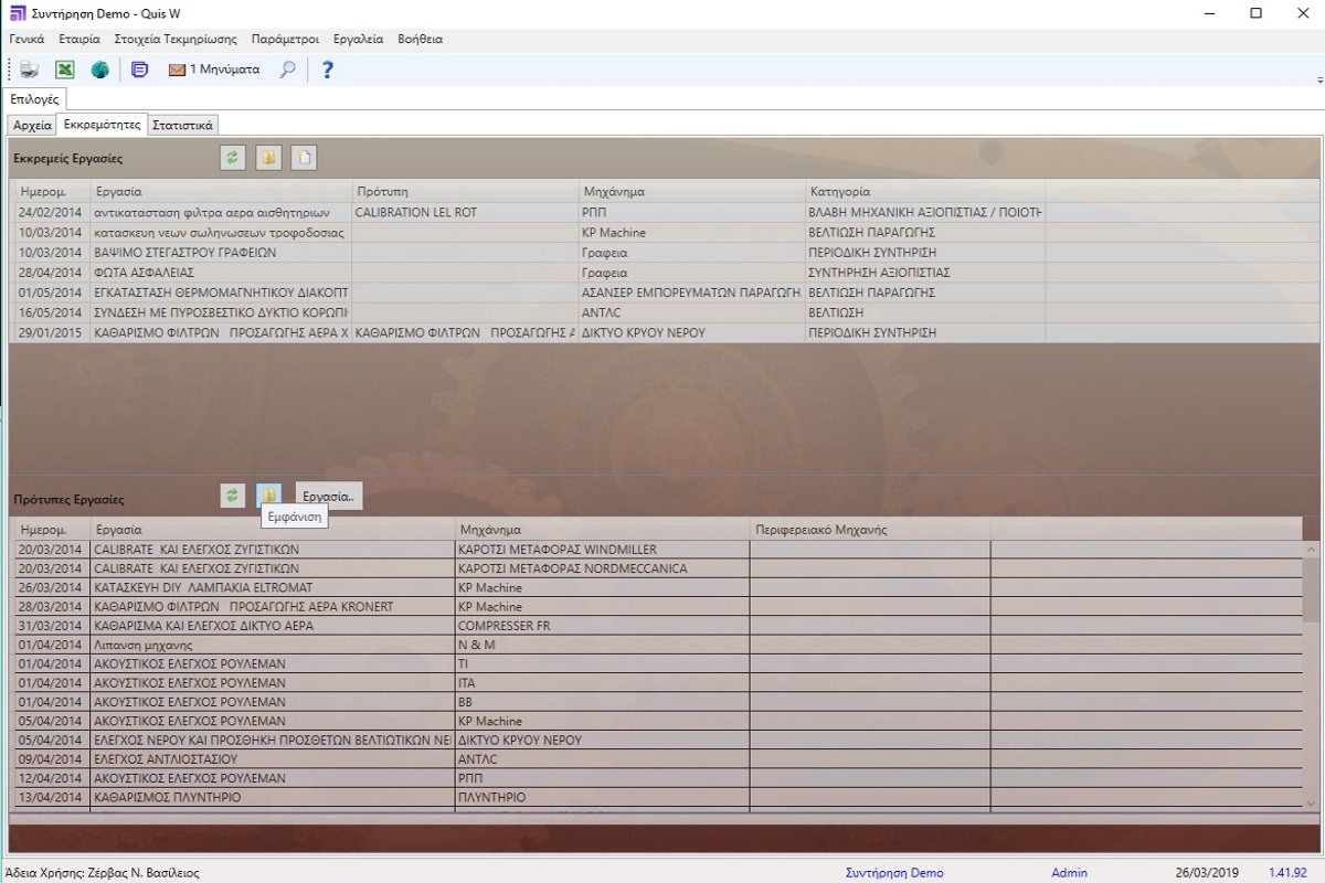 Με το λογισμικό Quis Service μπορούμε αυτοματοποιήσουμε τις εργασίες συντήρησης του εξοπλισμού (Μηχανές παραγωγής, αυτοκίνητα, φορτηγά, και κάθε μηχάνημα γενικότερα)